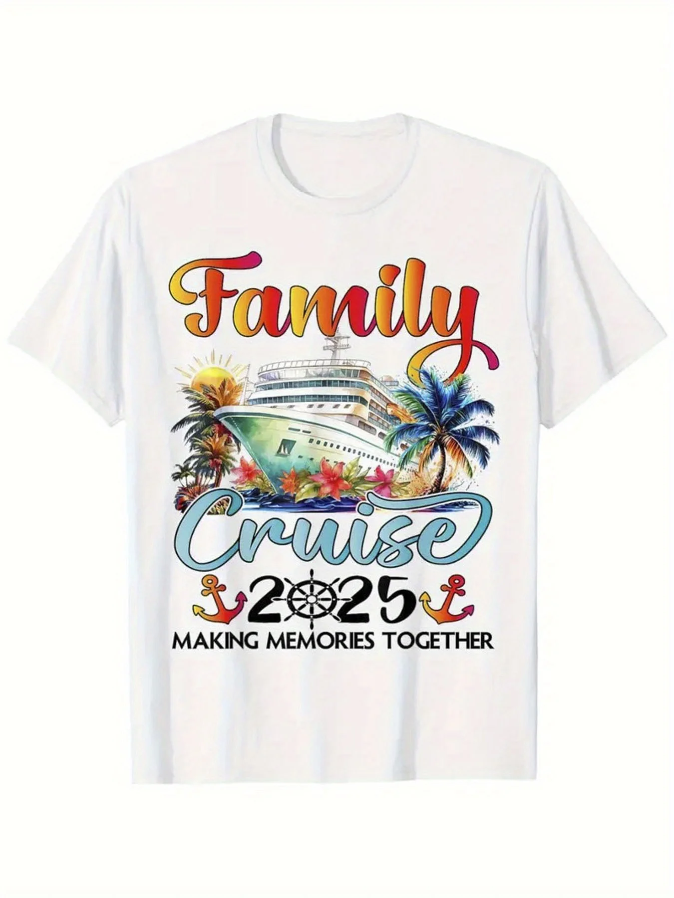 Family Cruise 2025 Matching T-Shirt -100% Cotton, White Round Neck