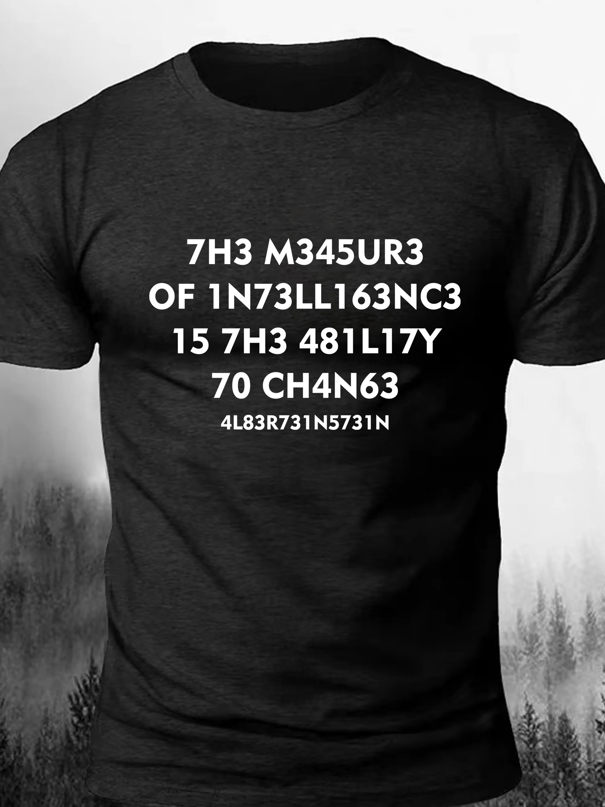 Plus Size Men's Navy Blue T-Shirt with Unique Number Print - Casual Streetwear, Polyester & Elastane Blend